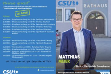 Lernen Sie die Stadtratskandidatinnen und -kandidaten der CSU sowie Bürgermeisterkandidat Matthias Meier kennen und tauschen[…]